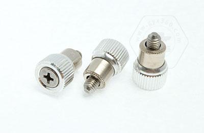 手緊螺釘?shù)膲恒T套具有壓花齒,壓裝于于機箱或薄鈑孔內(nèi)(注:薄板的鉆孔徑相對應彈簧螺釘?shù)膲糊X徑有一定要求的,形成一個外露的彈簧螺釘,用手擰另一端(即手擰端).因其里面固定有彈簧,螺釘相對于薄板的另一端來回進出。