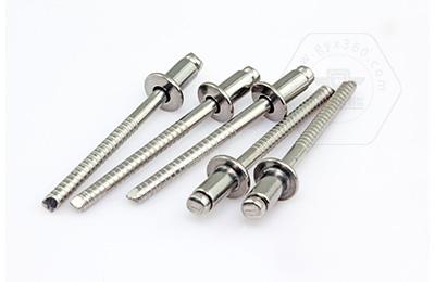 鉚接時(shí),鉚釘釘芯由專用鉚槍拉動,使鉚體膨脹,起到鉚接作用。這類鉚釘特別適用于不便采用普通鉚釘(須從兩面進(jìn)行鉚接)的鉚接場合。故廣泛用于建筑、汽車、船舶、飛機(jī)、電器、家具等產(chǎn)品上。