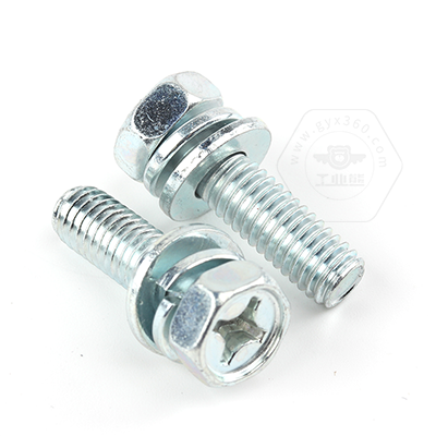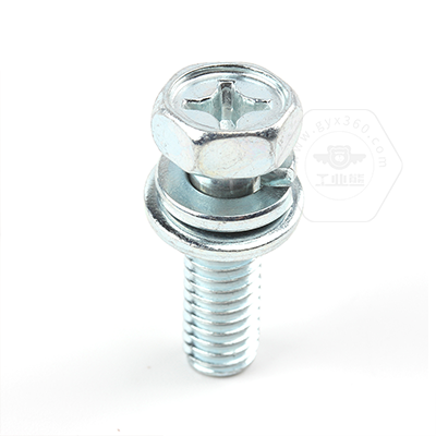 工業(yè)熊碳鋼8.8級(jí)藍(lán)白鋅48h十字槽凹穴六角頭帶平彈墊組合螺釘GB9074.13
